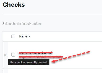 We frequently pause checks temporarily, and it would be helpful to have a feature allowing us to add a note explaining the reason for the pause. This note could appear when hovering over the pause icon and either replace or supplement the default message, 'This check is currently paused.'